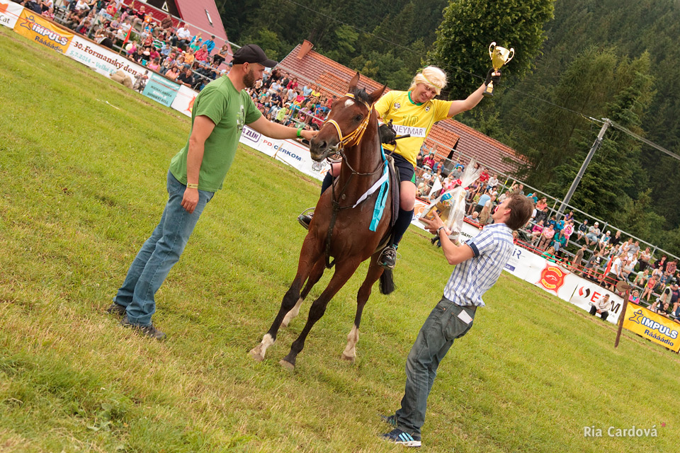 A ještě jeden krásný okamžik zažily Velké Karlovice – poděkování Františku Holčákovi před „nastoupenou jednotkou“ za to, že Formanský den před více než třiceti lety založil, dlouhou dobu organizoval s partou nejbližších kamarádů, rodinou a kolegy… a že díky němu má Formanský den ve Velkých Karlovicích takovou tradici a zvuk. František byl dojatý k slzám a to jsme ani nestihli přečíst všechny jeho úspěchy z medailonku, který nám moc pěkně připravil dostihový odborník Martin Cáp.
